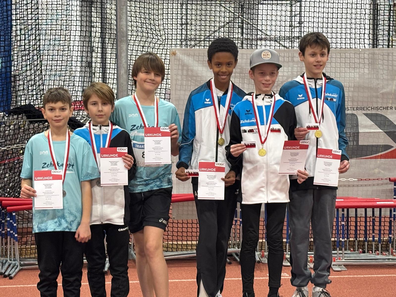 Laurenz Leopoldseder konnte sich in dieser Altersklasse den Landesmeistertitel mit 2635 Punkten unter 10 Teilnehmern sichern. Bronze ging an Levi Michel, der souverän den abschließenden 1000m-Lauf in herausragenden 2:49,54min gewann. Gemeinsam mit Felix Kerschbaumer konnten die drei auch die goldene Medaille in der Teamwertung mit nach Hause nehmen. Zusätzlich kam Felix Kerschbaumer in der Einzelwertung auf Platz 6 und Kilian Wimmer auf Platz 9.
